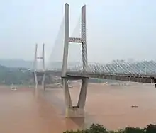 The Lidu Bridge is a cable-stayed bridge which crosses the Yangtze River in the Fuling District of Chongqing, China. Completed in 2007, the bridge cost ¥350 million and has a main span of 398 metres (1,306 ft).[1][2]