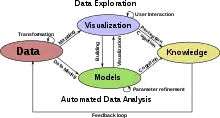 A visual analytics (VA) workflow diagram - Mixed reality (MR) allows interaction with real and virtual objects in a mixed reality environment, transforming how people interact with data. In the interpretation phase of LCA, where inventories and process impacts are considered, MR facilitates interaction with complex data sets to investigate scenarios and validate assumptions. It has the potential to break down barriers that inhibit the flow of information.[9]