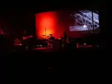 The same year, the band released their second audiovisual publication in the DVD format, also under the title Aliens from Planet Earth.[25] Just like Beyond a Shadow of a Doubt, the DVD showed that Light Coorporation concerts merge music with film projection. Works presented during their concerts remain in the convention of the independent cinema, stylistically approaching video art; they sometimes mimic black-and-white documentaries. In concert, the visual materials are mixed live; they include fragments of films, vintage videotapes and photographs, all mirroring the contemporary world.[26][27] In effect, the visual element enters into dialogue with the music. By using the visual as well as auditory stimuli, and building the atmosphere by guitar riffs and silence, the band encourages listeners to arrive at their own, individual interpretation of the entire performance.[28]