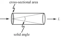 Radiance L along a ray can be thought of as the amount of light traveling along all possible straight lines through a tube whose size is determined by its solid angle and cross-sectional area.