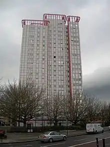Lightening holes have been used on various architecture designs.[10] During the 1980s and early 1990s, lightening holes were fashionable and somewhat seen as futuristic and were used in the likes of industrial units, car showrooms, shopping precincts, sports centres etc. Parsons House in London is a notable building that uses lightening holes since its renovation in 1988.[11][12] Ringwood Health & Leisure Centre in Hampshire is another notable example.[13][14]