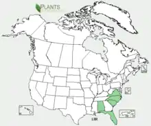 Lilium iridollae grows along streams in wet pine woodlands and in pitcher plant bogs in the southeastern United States.[3] It is mainly found in Florida, North Carolina, South Carolina, Alabama, and Virginia. This species has become endangered in Florida and threatened in North Carolina.[2]