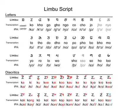 The Limbu script (also Sirijanga script)[1] is used to write the Limbu language. It is a Brahmic type abugida.[2]