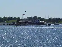 Lime Rock is an island located 600 feet offshore in Newport Harbor, in Narragansett Bay, in the U.S. state of Rhode Island. It was made famous by Ida Lewis, the lighthouse keeper of the tower built on it in 1854 which is now known as Ida Lewis Rock Light.[1] In 1927 the island was sold to a Yacht Club and was connected to Aquidneck Island by a small causeway. A steel tower light was placed in front of the building, which remained an active light until 1963.[2]
