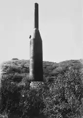 From 1887 to 1890 the Rockland Lime and Lumber Company harvested limestone from a scree slope and fed it into four iron and stone lime kilns they erected onsite. Long exposure to very hot fires extracted lime.[1] Barrels of lime were slid on a cable out to Rockland Cove, where they were loaded onto ships. The lime was a key ingredient in the cement that was used for construction in San Francisco and Monterey.[3] However, after three years the company had exhausted most of the limestone as well as the redwood used to fire the kilns. A .5-mile (0.80 km) trail leads from the Big Sur Coast Highway to the ruins of the lime smelting operations, which include four kilns and some stone walls and bridge abutments.[1]