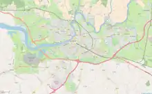At the 2016 census, the Metropolitan District of Limerick had a population of 104,952.[9] On 1 June 2014 following the merger of Limerick City and County Council, a new Metropolitan District of Limerick was formed within the united council, which extended the city area. The Metropolitan District includes the city urban area and extends outwards towards Patrickswell in the west and Castleconnell in the east.[10] The City Metropolitan Area however excludes city suburbs located within County Clare. Limerick is located on the River Shannon with four main river-crossing points near the city centre. To the south of the city is the Golden Vale, an area of rich pastureland. Historically, much of the city's industry was based on this agricultural hinterland.