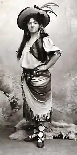 Lina Abarbanell (January 3, 1879[1] – January 6, 1963[2]) was an American soprano singer who performed in grand and light opera and musical comedy. She made her debut at sixteen at the Neues Theatre, Berlin and was first introduced to American theatergoers in 1905 as the soubrette in the Josef Strauss operetta Frühlingsluft (Spring Air). Abarbanell made opera history later that year as Hänsel in The Met's debut production of Engelbert Humperdinck's Hänsel und Gretel. Abarbanell spent the following near thirty years performing on Broadway and at venues across America. After her husband's death in 1934, Abarbanell left the stage, but remained active over virtually the remainder of her life as a Broadway casting director, producer, and stage director.