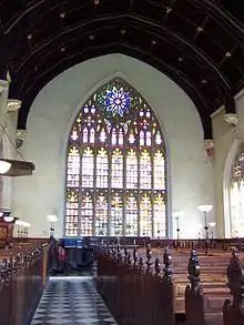 The chapel's first pipe organ was a Flight & Robson model installed in 1820.[38] A substantial William Hill organ replaced it in 1856; a model designed at the peak of his skill, with thick lead and tin pipes,[39] a set of pedals, and three manuals.[38] During its service years it was rebuilt nine times, the final overhaul carried out in 1969. In the 2000s the organ, increasingly unreliable, was seen to have little unaltered initial material, with little hope of returning it to original condition, and it was replaced with a Kenneth Tickell model, the new organ installed during 2009–2010.[38]
