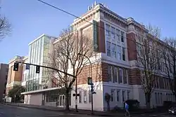 Designed by Morris H. Whitehouse of Whitehouse and Fouilhoux Architecture, it was constructed as the second home of Lincoln High School in 1912.[1][2][4][6][7][8] The 45-room schoolhouse was constructed on a former cow pasture belonging to Jacob Kamm, who was involved in steamboat shipping on the Columbia River.[3][9] In 1937, during its use as Lincoln High School, the building served 1580 students.[3] After the 1948 flood of Vanport City, Oregon, the Oregon State Board of Higher Education purchased the building from the Portland Public School District[10] in 1952 for $875,000[11] as a new home for the Vanport Extension Center. The purchase followed the passing of House Bill 213, signed by Paul Patterson on April 15, 1949.[2]