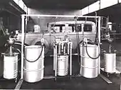Despite the pressures of a long-term suit, the company developed the first drum pump for transferring lubricants from the original refinery containers. Lincoln developed the first portable oil drain and a quick detachable air coupler. These innovations led to complete lubrication pumps and swivel assemblies that dispensed lubricant directly from the original refinery container to an automobile on an overhead lift. Service stations, car dealers and mechanics began to heavily promote their lubrication services and Lincoln developed white drum sleeves to cover the refinery containers. (Fox)