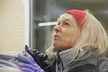 She was recommended for the job in 1972 when a woman from her college contacted her to fill the void of the original butter sculptor who was moving.[3] Her audition for the job was to work on a 55-pound block of butter for three hours.[4] In 1985 Earl and Linda divorced.[11] She worked as a middle-school art teacher in Twin Cities’ schools and later at General Mills. For a while, she lived and owned a sculpture studio and gift shop in Danbury, in north Wisconsin. There she made ceramic wildlife sculptures for her gift shop. More than 20 years ago, she created her own line of greeting cards, known as the “Elderberries” which conveys gentle humor about aging.[7] She has taught calligraphy, sculpture and drawing. In 2000, she received a master's degree in theology from the University of St. Catherine in St. Paul, Minnesota. She took poetry classes at the Loft Literary Center in Minneapolis and continues to write and study for an online group. She also attended workshops to become a Zumba fitness instructor. She took classes in kinesiology, the study of human movement, to teach specialized classes. These are for older athletes, a special fitness level or classes for medical related issues.[11]