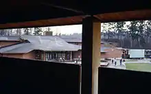 Lindbergh features unusual architecture compared to traditional boxy high school buildings. Originally intended to be a community college, the school is constructed with concrete floors and brick walls with wooden beams supporting sloped roofs. The building stretches up and across a small hill. It was originally built around two "houses", where home rooms and lockers were located, with a third planned house for expansion that was never built. The floors and sections of the school still function as a kind of departmental divide, with the right side of the third floor containing the math classes, the first floor containing the language arts classes, etc. Another distinct feature is a skybridge linking the main building with the gymnasium and the student parking lot.