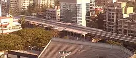 By October 2011, the majority of the corridor's track-support pillars and girders had been laid, and the 12 individual stations were 70% complete, with most of the stations rising above platform level.[24] However, land acquisition and right-of-way issues, along with problems with the construction of a Metro-related viaduct, delayed the line's predicted completion to summer 2012.[24][25] In May 2012, the Indian Bank restructured the Mumbai Metro's ₹1.08 billion (US$14 million) loan account, citing the project's land use problems.[26]