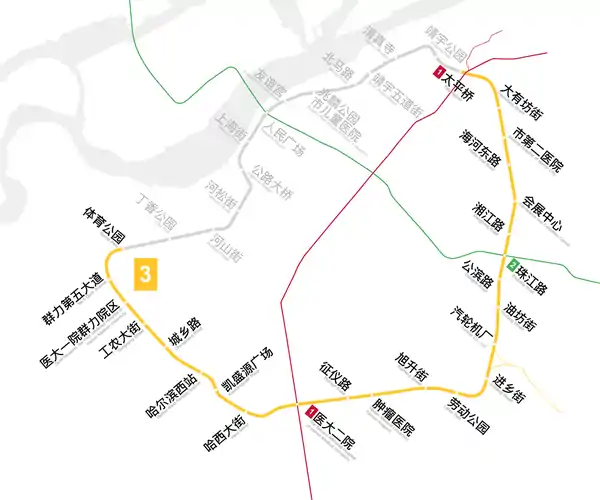 - "哈尔滨地铁3号线34座站点公布 贯穿道里道外等四区". district.ce.cn (in Chinese). 22 October 2014. Archived from the original on 3 February 2018. Retrieved 3 February 2018.