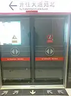 Line 5 is the first subway line in Beijing to have platform screen doors in underground stations and automatic platform gates in elevated stations that prevent riders from falling onto the tracks. Line 5 stations also have LCD screens that display the wait times for the next train. Line 5 trains have digital voice announcements (in Mandarin and English) and LCD passenger information displays.
