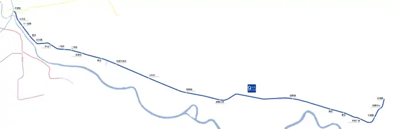 Line 9 is a rapid transit line of the Tianjin Metro. It spans 52.8 km with 21 stations, connecting the urban area of Tianjin with Binhai New Area, a new area within the jurisdiction of Tianjin Municipality. The one-way journey time is approximately one hour.