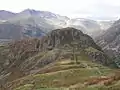 The summit area is formed from a large sill of andesite, overlying the dacitic lapilli-tuff of the Lingmoor Fell Formation.[1]