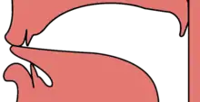 Linguolabials are produced by constricting the airflow between the tongue and the upper lip. They are attested in a number of manners of articulation including stops, nasals, and fricatives, and can be produced with the tip of the tongue (apical), blade of the tongue (laminal), or the bottom of the tongue (sublaminal).[4][5] Acoustically they are more similar to alveolars than bilabials. Linguolabials can be distinguished from bilabials and alveolars acoustically by formant transitions and nasal resonances.[6]