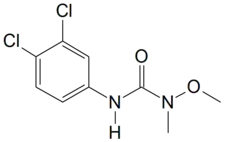 Linuron (3-(3,4-dichlorophenyl)-1-methoxy-1-methylurea) is a phenylurea herbicide[1] that is used to control the growth of grass and weeds for the purpose of supporting the growth of crops like soybeans.[2][3]