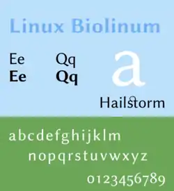 There is also a complementary humanist sans-serif face, Linux Biolinum, similar to Optima or Candara. It is available in bold and italic styles.