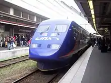 On the sections Oslo–Stockholm and Gothenburg–Copenhagen, Linx operated X2 electric multiple units owned by SJ. Forty-three units were delivered to SJ by Kalmar Verkstad between 1990 and 1997. The trains are standard gauge, have a power output of 3,260 kilowatts (4,370 hp) and a maximum speed of 200 kilometres per hour (120 mph). Each train consists of a locomotive, a number of middle cars and an end car. The trains use 15 kV 16.7 Hz AC power supply in Sweden and Norway, and 25 kV 50 Hz AC in Denmark.[23] Linx had two classes: business and second. On business class, a warm meal and drink was included, while in second class, a restaurant car was provided.[24] Seats had a power outlet for laptops, and free wireless Internet.[25]