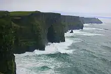 The Cliffs of Moher are one of Ireland's top visitor attractions, and include a protected colony of cliff-nesting seabirds. The area was designated as a Refuge for Fauna in 1988, and as a Special Protection Area for Birds (SPA) under the EU Birds Directive in 1989.[12]