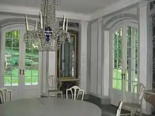 Among the most impressive rooms are the Entrée, an airy room opening onto the garden, the spacious Dining Hall, the Ghost Room which was Lisa's boudoir, and the Monkey Room with its monkey mirror. The monkey at the top of the bamboo-frame mirror may well be in remembrance of a pet monkey who helped save the family during the Lisbon earthquake in 1755.