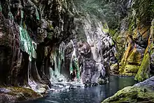 The hot spring is located 1,075 meters above sea level.[1] The hot spring came out from the holes of stone slopes forming waterfalls located in a deep river valley.[2][3]