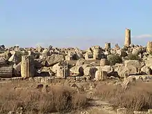 One of the largest Ionic temples. It was dipteral octastyle, with its entrance to the west. It was left unfinished, with further construction around 275 BC and was completed by the Romans. Little remains standing except the foundations, two intact columns and several stumps.[51] | ![]() |