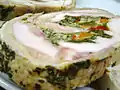 meat dish | cold, sliced veal covered with a creamy, mayonnaise-like sauce that has been flavored with tuna. It is considered a traditional Christmas dish.[6][7] |