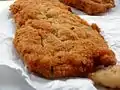 Pampas | meat dish | a thin, breaded and deep fried or baked slice of beef, chicken, or sometimes pork, and even eggplants or soy. |