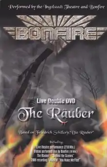 The Räuber – Live is a video released by German heavy metal band Bonfire in 2009. It features two discs, the first having the entire rock opera performance of The Räuber while the second one has a behind-the-scenes look at the opera rehearsals and a new updated music video for You Make Me Feel. The rock opera is performed entirely in German with English only being in the songs as they are performed.[7][8]