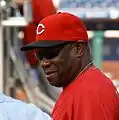 Lou Piniella (shown in a Chicago Cubs uniform) managed the Reds for three seasons and won the World Series in 1990 with the team.