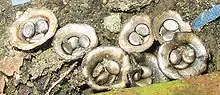 Mysore India | Pale colored and plicate; has peridioles and spores with an ellipsoidal outline.[16] | ||