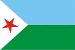 ![]() | 1977-Present | Flag of Djibouti | A horizontal bicolour of light blue and light green, with a white isosceles triangle at the hoist bearing a red star in its center.[1][2] |