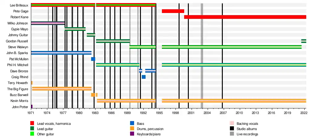 On 16 June 2021, it was announced that Walwyn was "unavailable to play live shows for the foreseeable future".[22] Later concerts were played by former guitarist Gordon Russell,[23] whom Walwyn had replaced 32 years before.