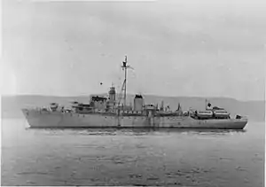 Empire Parkeston was a 5,556-GRT troopship which was built by Cammell Laird & Co Ltd, Birkenhead. Launched in 1930 as Prince Henry for Canadian National Steamships. Sold in 1937 to Clark Steamship Co, Quebec. Refitted and renamed North Star. Purchased in 1939 by the Royal Canadian Navy and converted by Burrard Dry Dock co, Vancouver to auxiliary cruiser HMCS Prince Henry. On 2 April 1941, Prince Henry intercepted German blockade runners Hermonthis and München 200 nautical miles (370 km) west of Callao, Peru. Both ships were scuttled by their crews. Converted in 1944 to a landing ship and used in Operation Overlord and Operation Dragoon. On Christmas Day 1944 she took to Corfu 1400 evacuees fleeing the Greek Civil War in Preveza, followed by two more trips with another 3000 people in total.[1] In 1945 she took Italian and Russian ex-prisoners of war to Taranto, and 247 New Zealanders to Alexandria, on the first leg of their journey home.[1] She escorted a convoy from Gibraltar to the UK in March 1945 and was paid off as a Canadian ship on 15 April 1945 as the RCN no longer had the manpower to operate her.[1] A Royal Navy crew took over and she sailed for Wilhelmshaven in late 1945 as HMS Prince Henry, to serve as an accommodation and headquarters ship.[1] She was transferred to the British Ministry of Transport (MoT) for $500,000[1] in 1946 and renamed Empire Parkeston. Used as a troopship between Harwich and the Hook of Holland. Scrapped in February 1962 in Spezia, Italy.