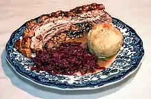Main course | Cured pig snouts and trotters that are cooked in vinegar together with several spices. Traditionally served with sauerkraut, erbspüree, and hot mustard. |