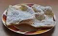 Main course or dessert | A sweet main dish made from quark, mashed boiled potatoes, a little flour, an egg and some grated lemon peel. The ensuing dough is baked as small, less than palm-sized pancakes and eaten hot with sugar and cinnamon, or with fruit, whipped cream, vanilla ice cream etc. |