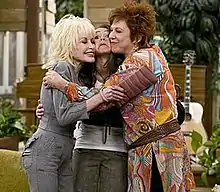 Aunt Dolly (left) and Mamaw (right) smother Miley in a hug after putting their 30-year feud behind them.