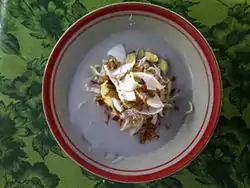 This is a list of Indonesian soups. Indonesian cuisine is diverse, in part because Indonesia is composed of approximately 6,000 populated islands of the total 18,000 in the world's largest archipelago,[1] with more than 1,300 ethnic groups.[2] Many regional cuisines exist, often based upon indigenous culture and foreign influences.[1] Indonesian soups are known to be flavoursome with generous amount of bumbu spice mixture.