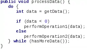 A snippet of Java code with keywords highlighted in blue and bold font