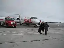 Passengers walking towards the terminal after arriving in Happy Valley Goose Bay, one of the destinations of Air Canada Express