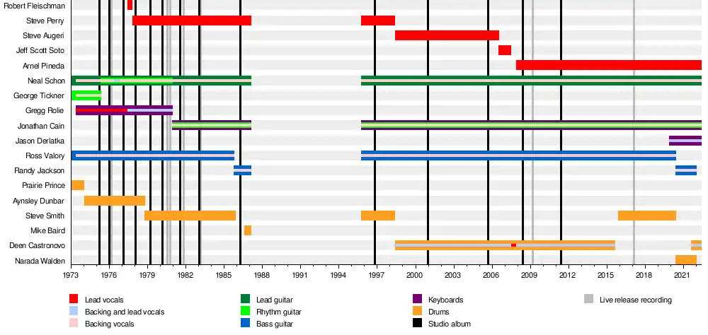 | Arnel Pineda | 2007–present | lead and backing vocals | all Journey releases from Revelation (2008) onwards | |