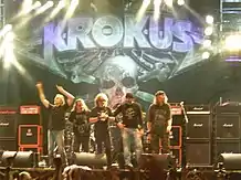 Krokus are a Swiss hard rock band from Solothurn. Formed in 1974, the group originally consisted of lead vocalist Peter Richard, guitarist Tommy Kiefer, bassist Remo Spadino and drummer Chris von Rohr. By the time of the release of their self-titled debut album, Kiefer and von Rohr had taken over lead vocal duties. The band's current lineup features von Rohr on bass, keyboards and backing vocals (1974–1983, 1987–1989, and since 2008), lead vocalist Marc Storace (1979–1988, 1994–1999, and since 2002), lead guitarist Mandy Meyer (1980–1982, 2004–2008, and since 2012), rhythm guitarist Dominique Favez (2003–2008 and since 2014), and drummer Flavio Mezzodi (since 2013).