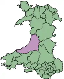 SSSIs in the UK are notified using the concept of an Area of Search, an area of between 400 km2 (150 sq mi) and 4,000 km2 (1,500 sq mi) in size.[2] The Areas of Search were conceived and developed between 1975 and 1979 by the Nature Conservancy Council (NCC), based on regions created by the Local Government Act 1972.[3] Whereas England had its Areas of Search based on 46 counties, those in Wales were based on a combination of the counties and smaller districts. In 1974, Wales was divided into 8 counties, with 37 districts. The NCC created 12 Welsh Areas of Search; they mostly follow county borders, but the larger counties (Dyfed, Powys and Gwynedd) were divided into multiple Areas using district borders. Mid and South Glamorgan were merged into a single AOS, whilst Llanelli district was included in the West Glamorgan AOS.