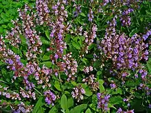 The first significant accounting of the genus was done by George Bentham in 1832–1836, based on a similarity in staminal morphology between Salvia members.[5] His work, Labiatarum Genera et Species (1836), is still the most comprehensive organization of Salvia. Even though there were only 291 species at that time, he still considered the possibility of forming five or six genera, due to differences between certain groups of Salvia. Bentham eventually organized the genus into four subgenera and twelve sections, based on differences in the corolla, calyx, and stamens. In the last 100 years, that system of organization is generally not endorsed by botanists.[2]