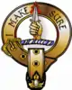 | Clan name | Crest badge | Blazon of crest & motto within crest badge; War cry and Clan badge | Clan chief; and Clan seat, or historical seat |