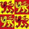 ![]() | 1938 on | Flag of Sark | A red cross on a white field (St George's Cross) with two lions (the arms of the Plantagenet Dukes of Normandy) in the canton. Strictly speaking, this was the personal flag of the Seigneur. Sark is an autonomous Crown Dependency and is part of the Bailiwick of Guernsey. |