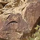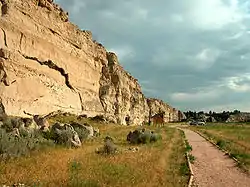 | Medicine Lodge State Archaeological Site | Big Horn County | 200 | 81 | Sandstone cliff with hundreds of Native American petroglyphs and pictographs | |